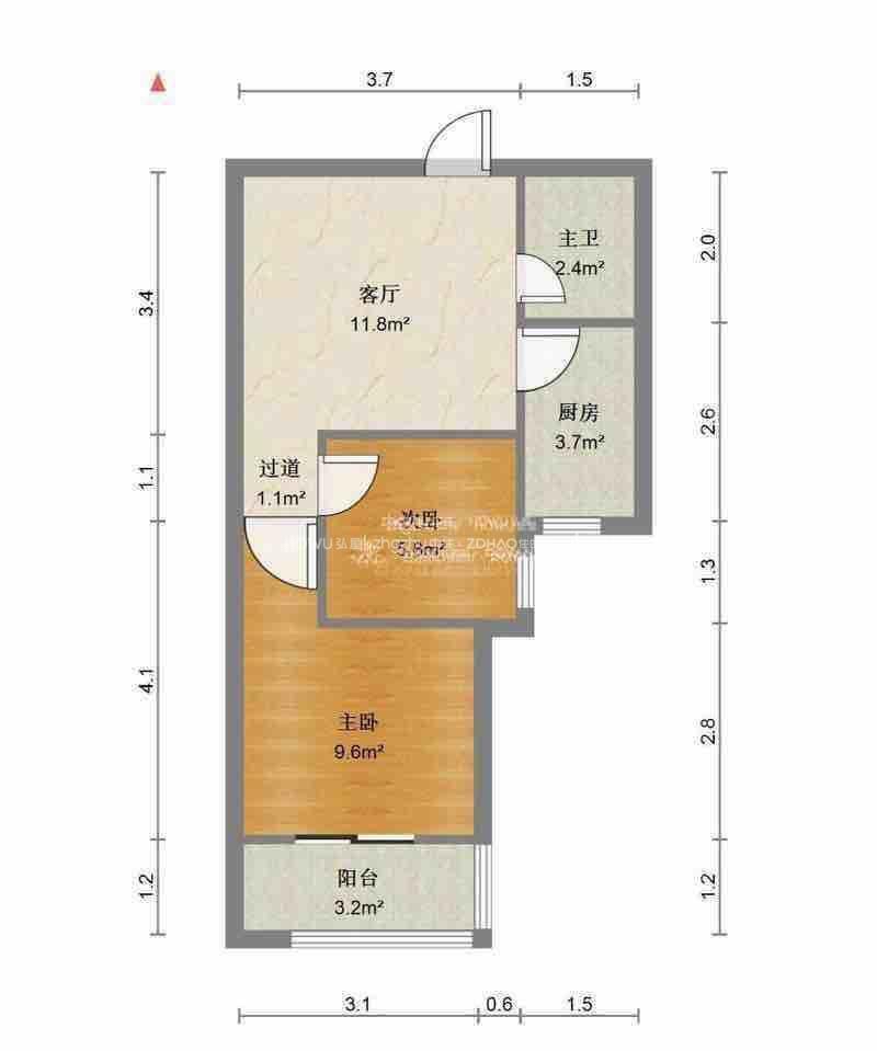 厅室2室1厅1卫1阳台