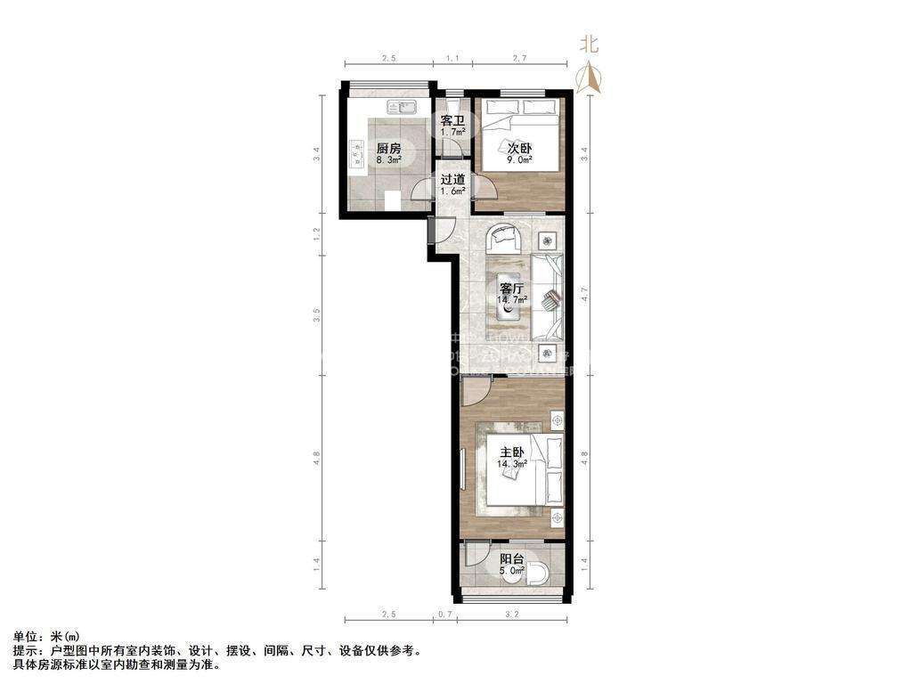 厅室2室1厅1卫1阳台