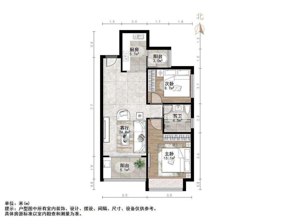 厅室2室2厅1卫1阳台