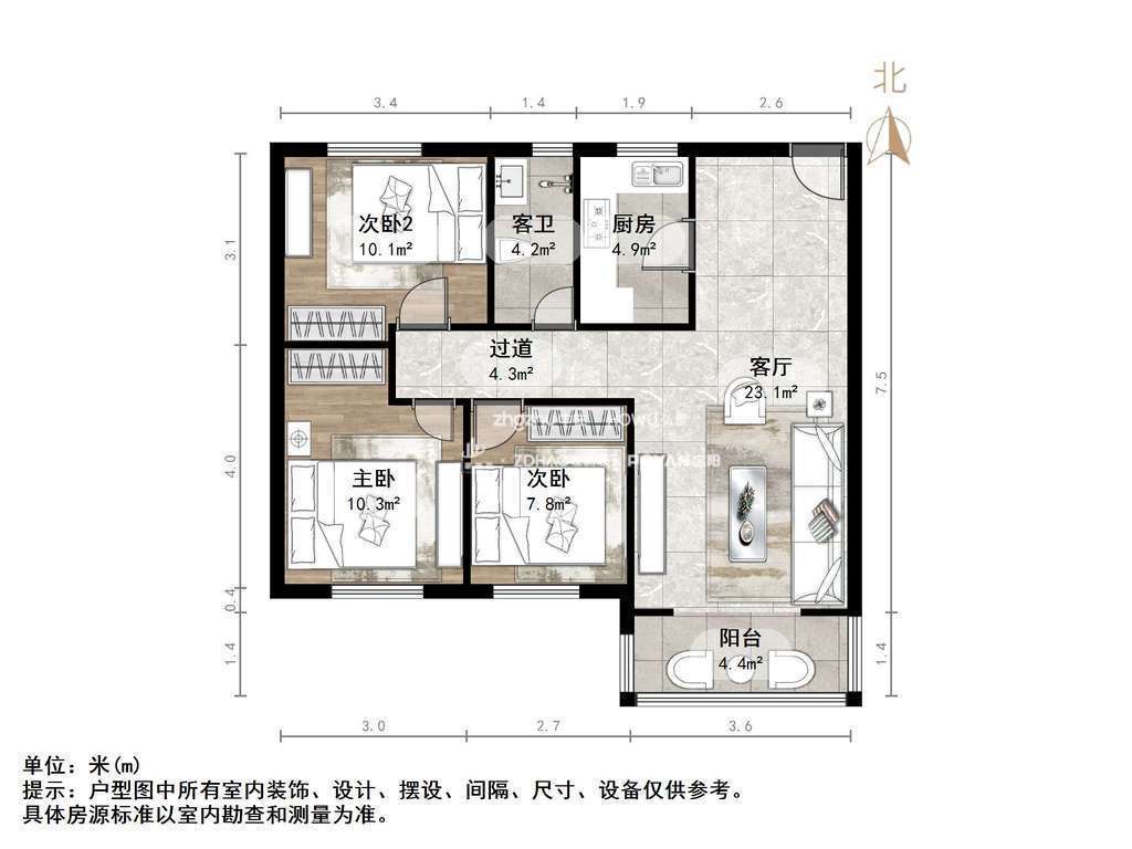 朝向南北 建筑面积96.77㎡