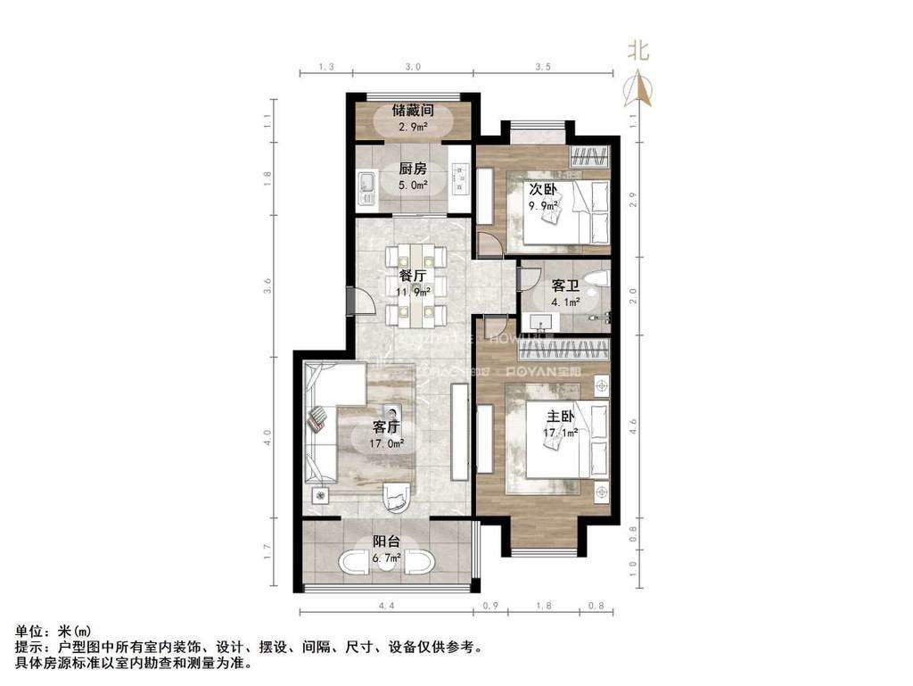 朝向南北 建筑面积99.52㎡