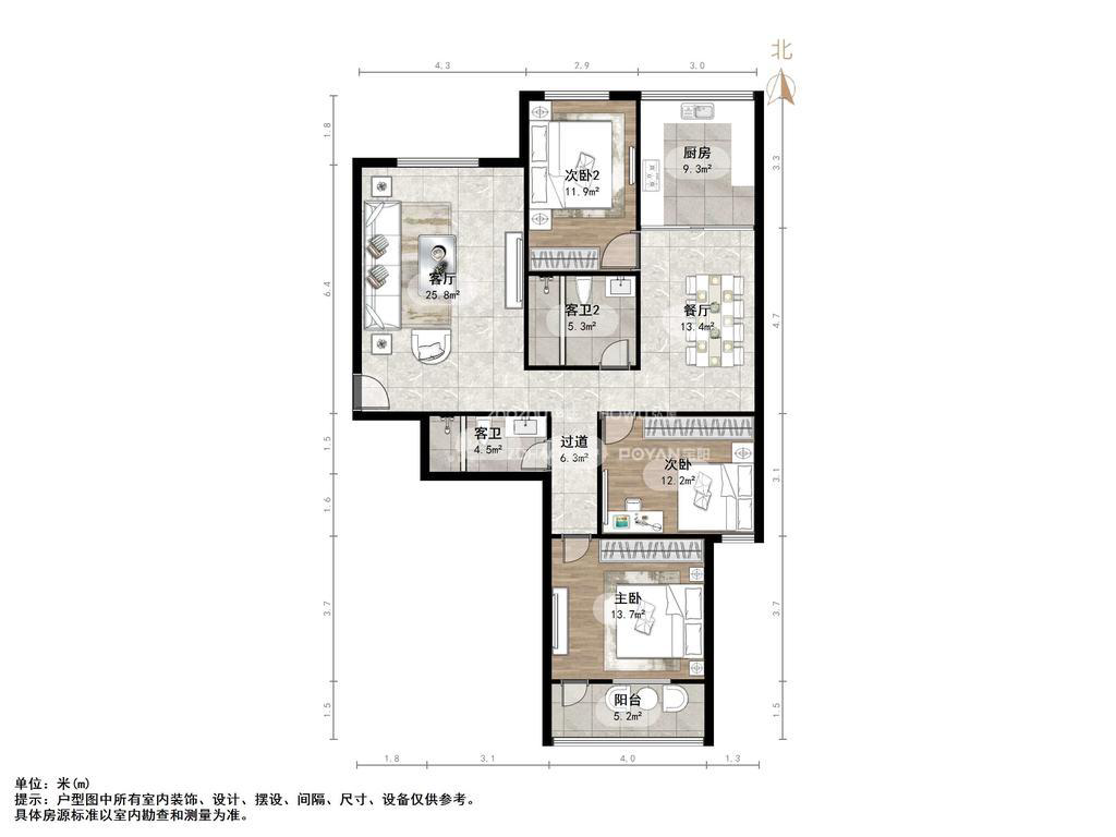 朝向南 建筑面积136㎡
