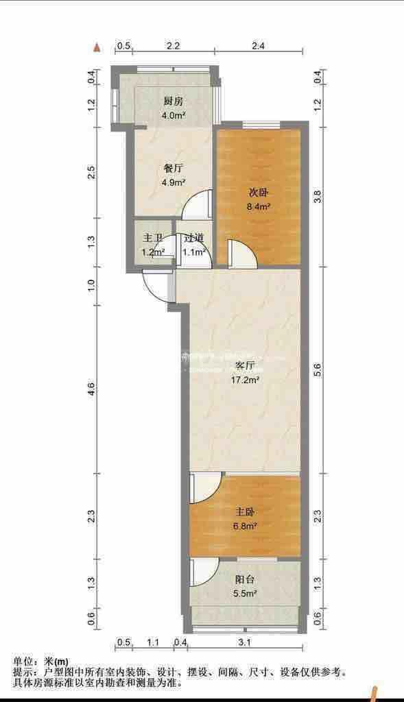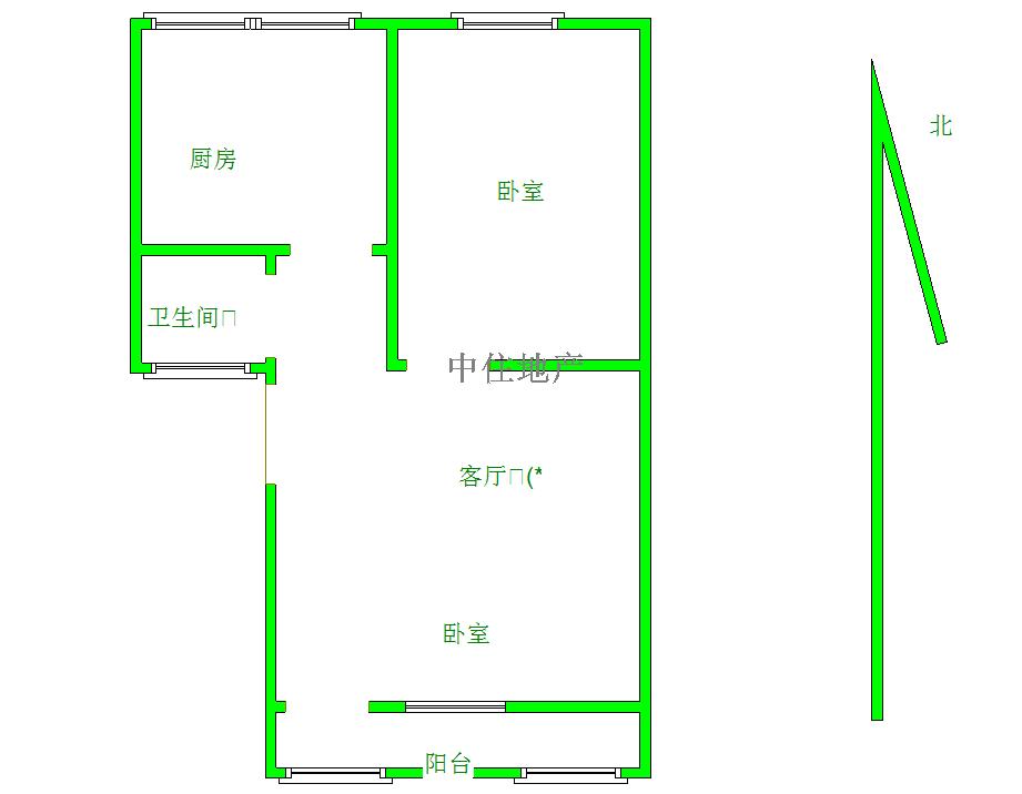 朝向南北 建筑面积60㎡
