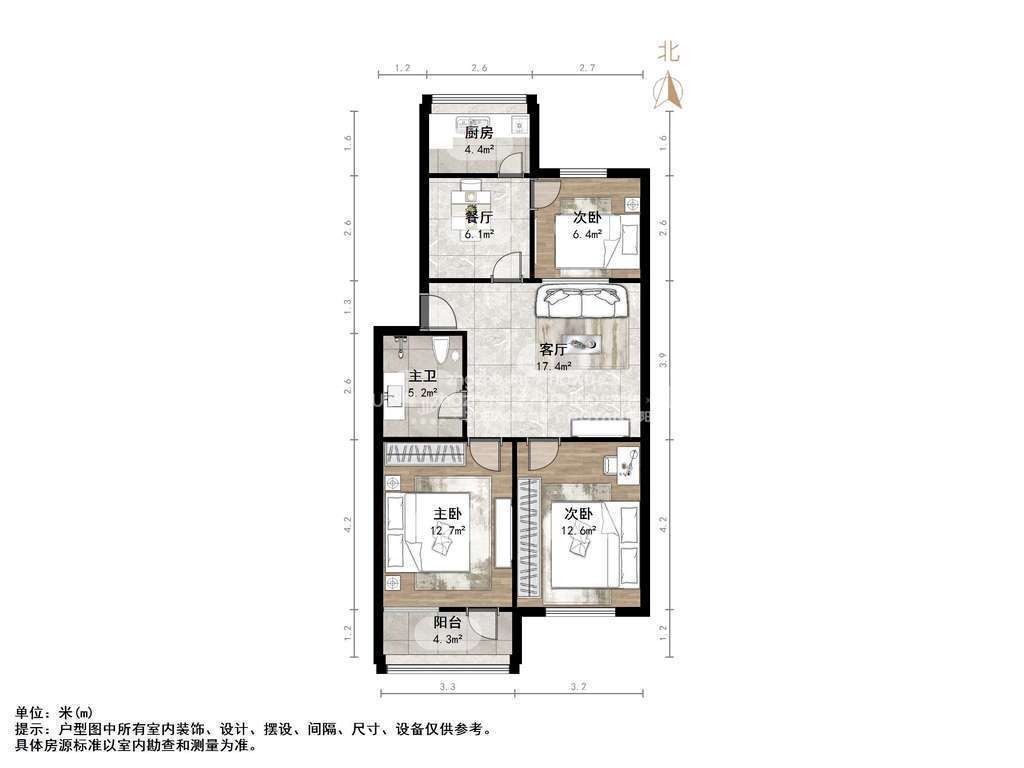 厅室3室1厅1卫0阳台