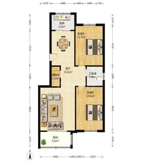 厅室2室2厅1卫1阳台
