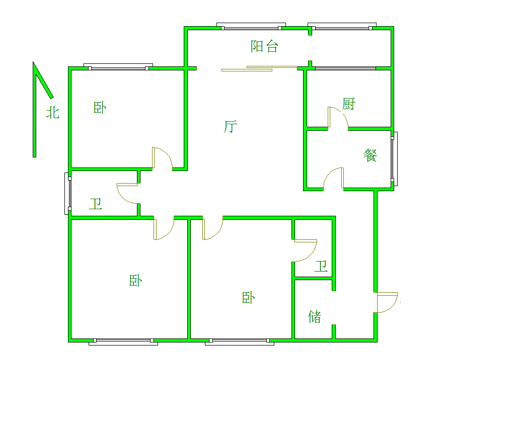 厅室3室2厅2卫1阳台