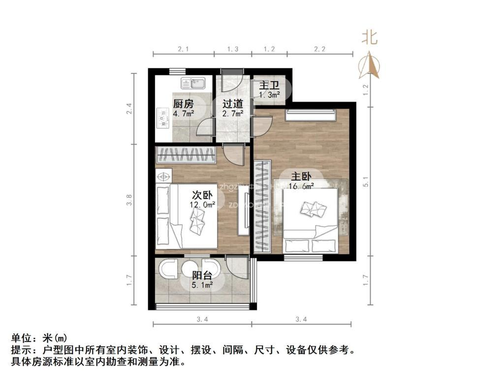 厅室2室0厅1卫1阳台