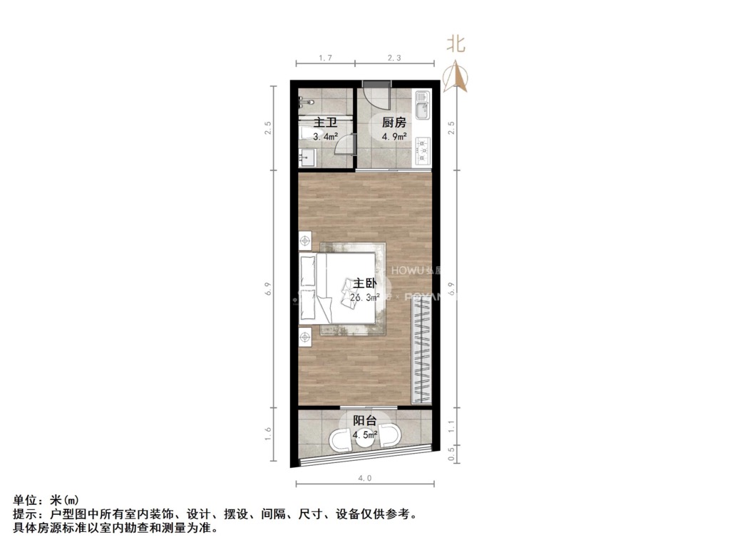 厅室1室1厅1卫1阳台