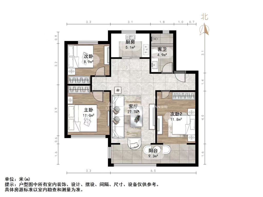 朝向南 建筑面积111㎡