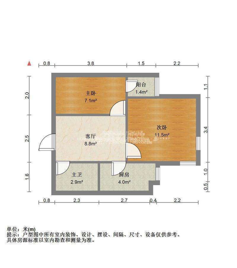 厅室2室1厅1卫1阳台