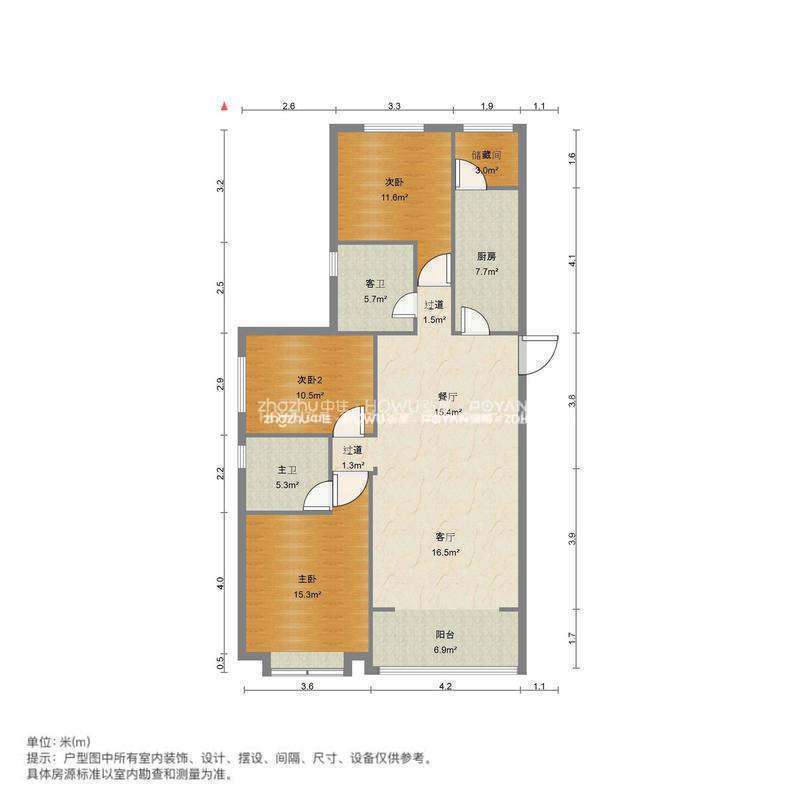 厅室3室2厅2卫2阳台