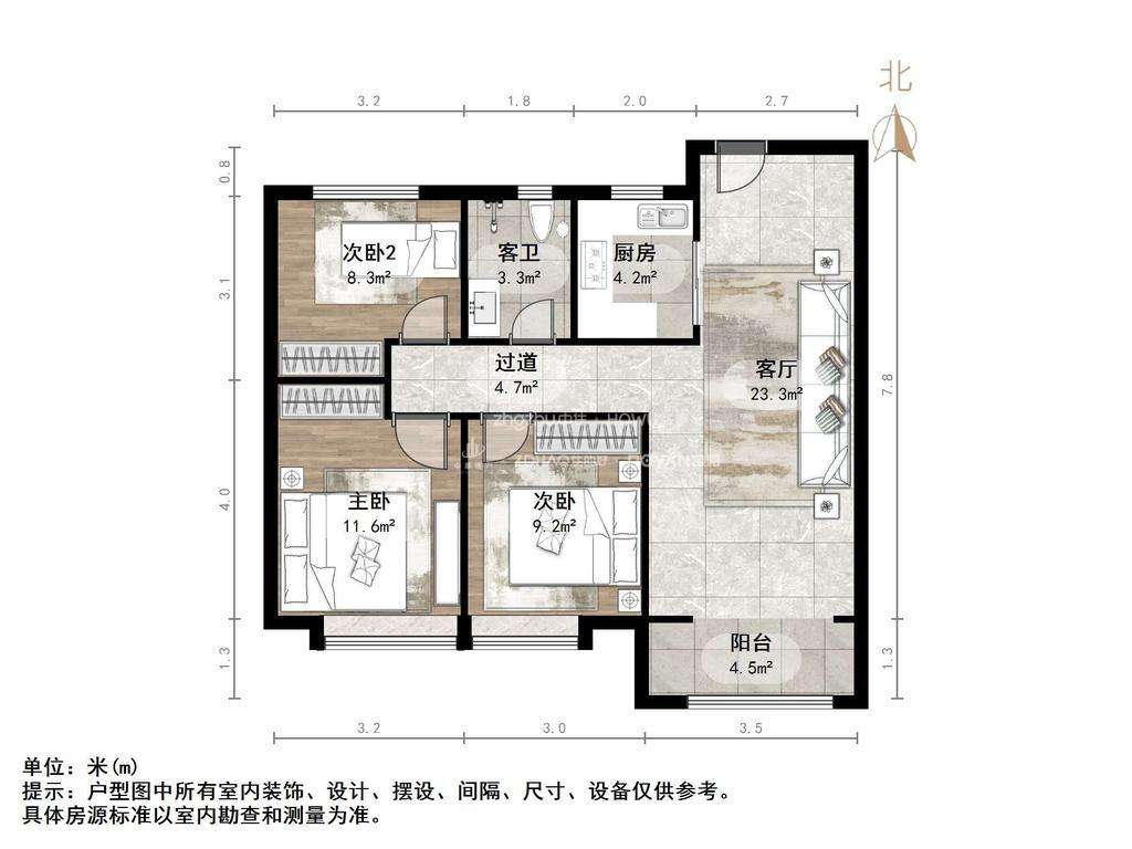 朝向南北 建筑面积108㎡