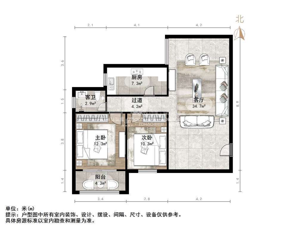 朝向南 建筑面积101.76㎡