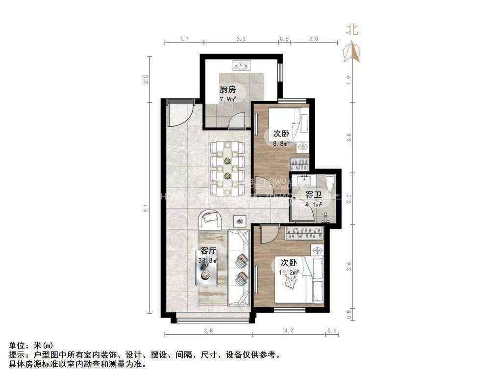 朝向南北 建筑面积95㎡