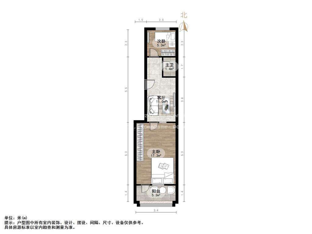 厅室2室1厅1卫1阳台