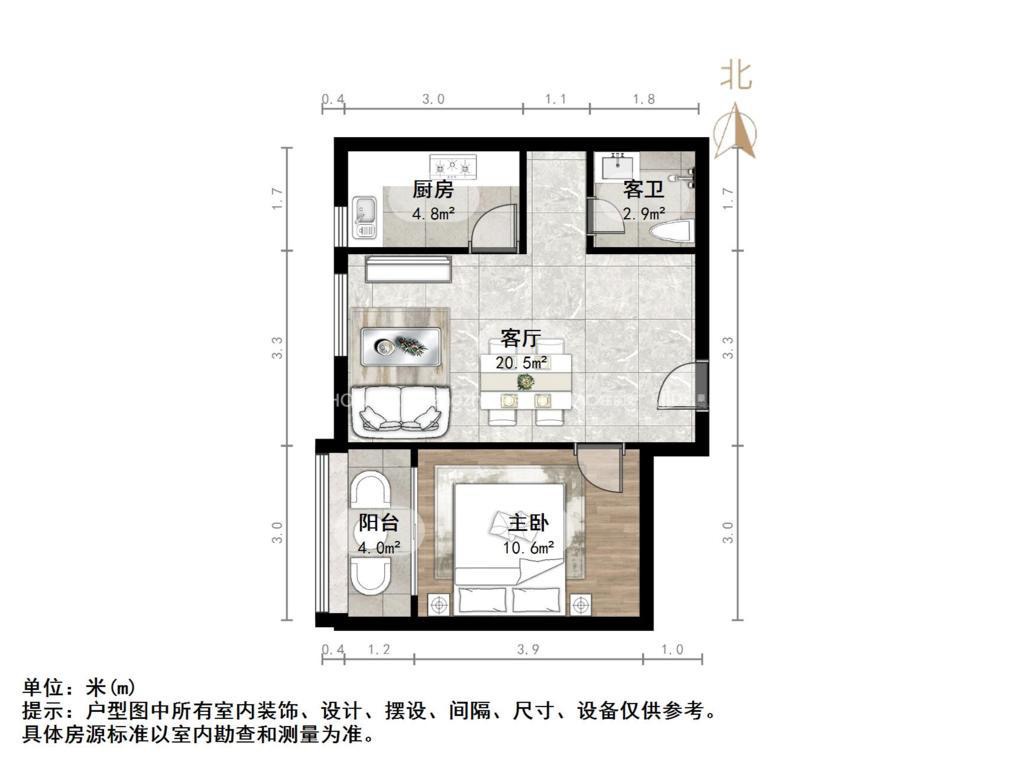 厅室1室2厅1卫1阳台