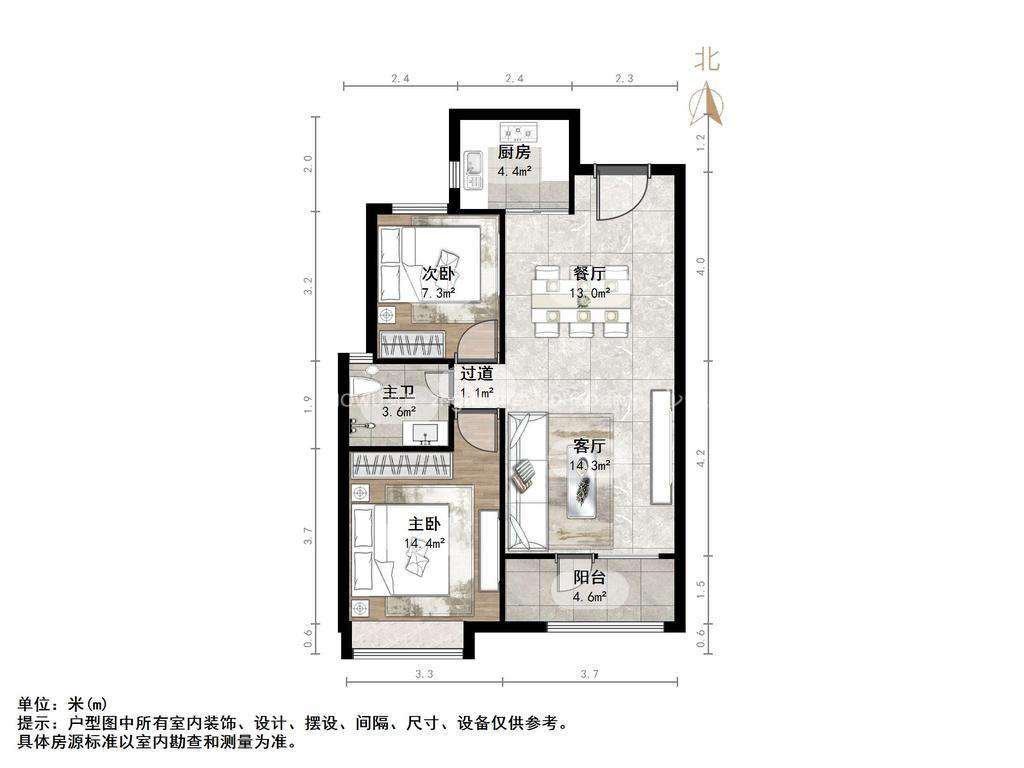 朝向南北 建筑面积77㎡