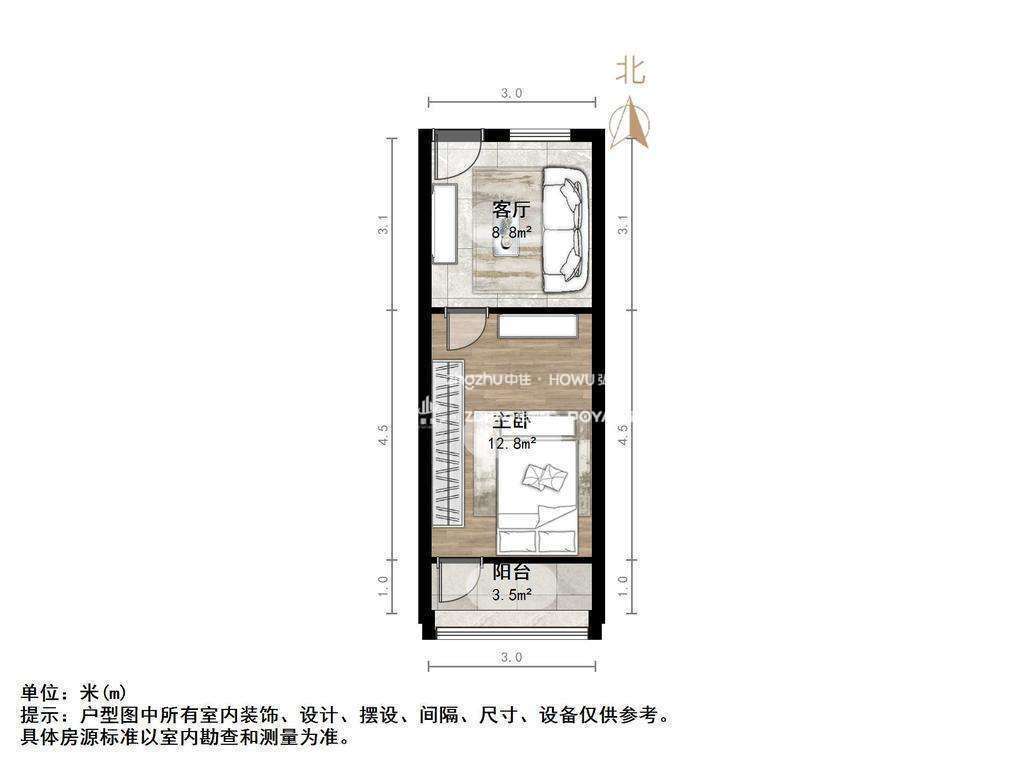 厅室1室1厅0卫1阳台