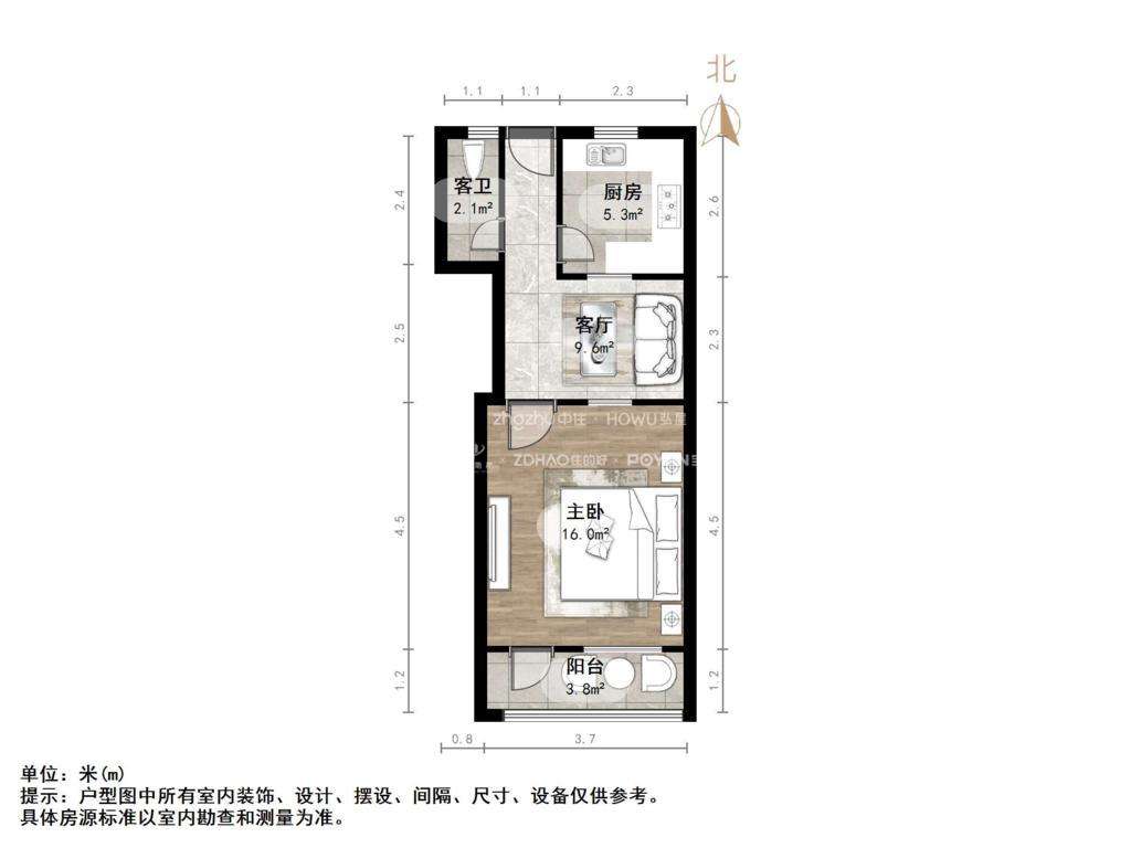 厅室1室1厅1卫1阳台