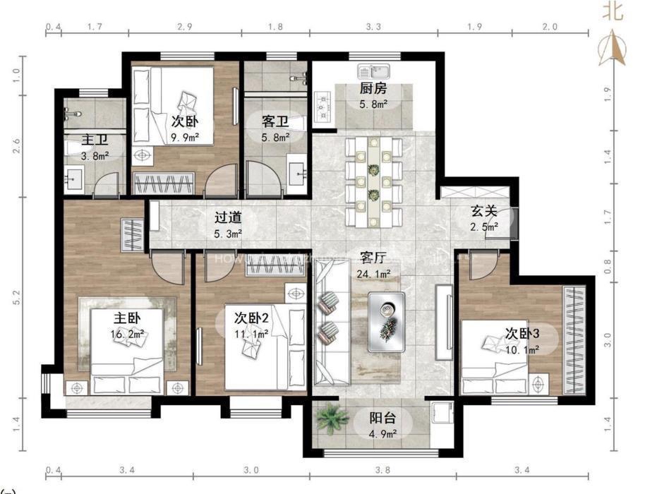 厅室4室2厅2卫1阳台