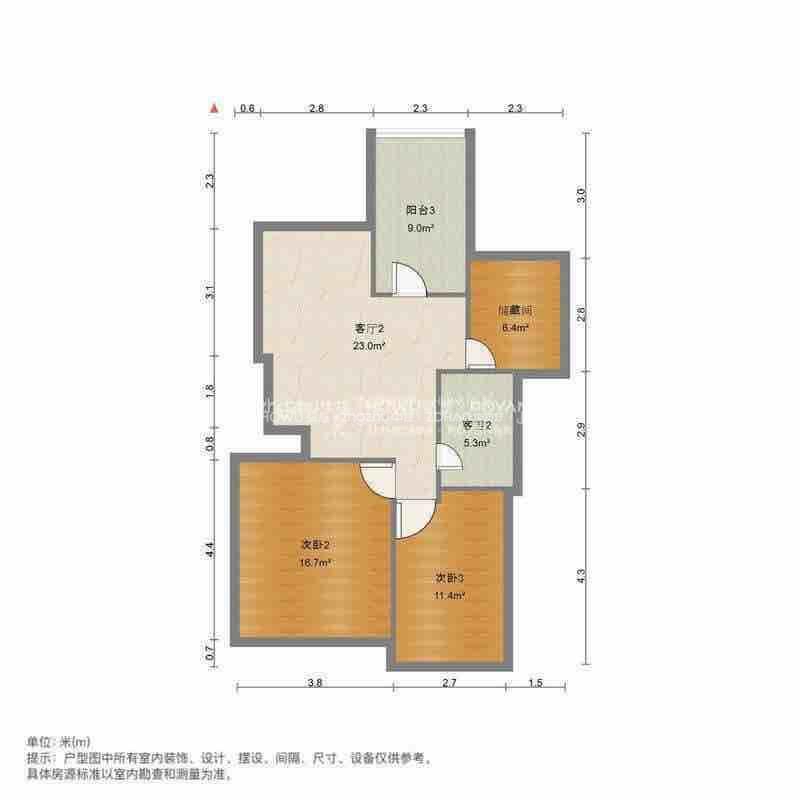 厅室2室2厅2卫1阳台