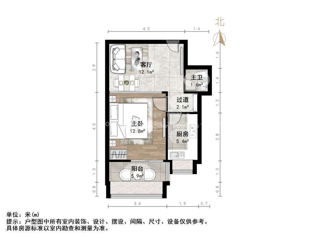 朝向南北 建筑面积47㎡