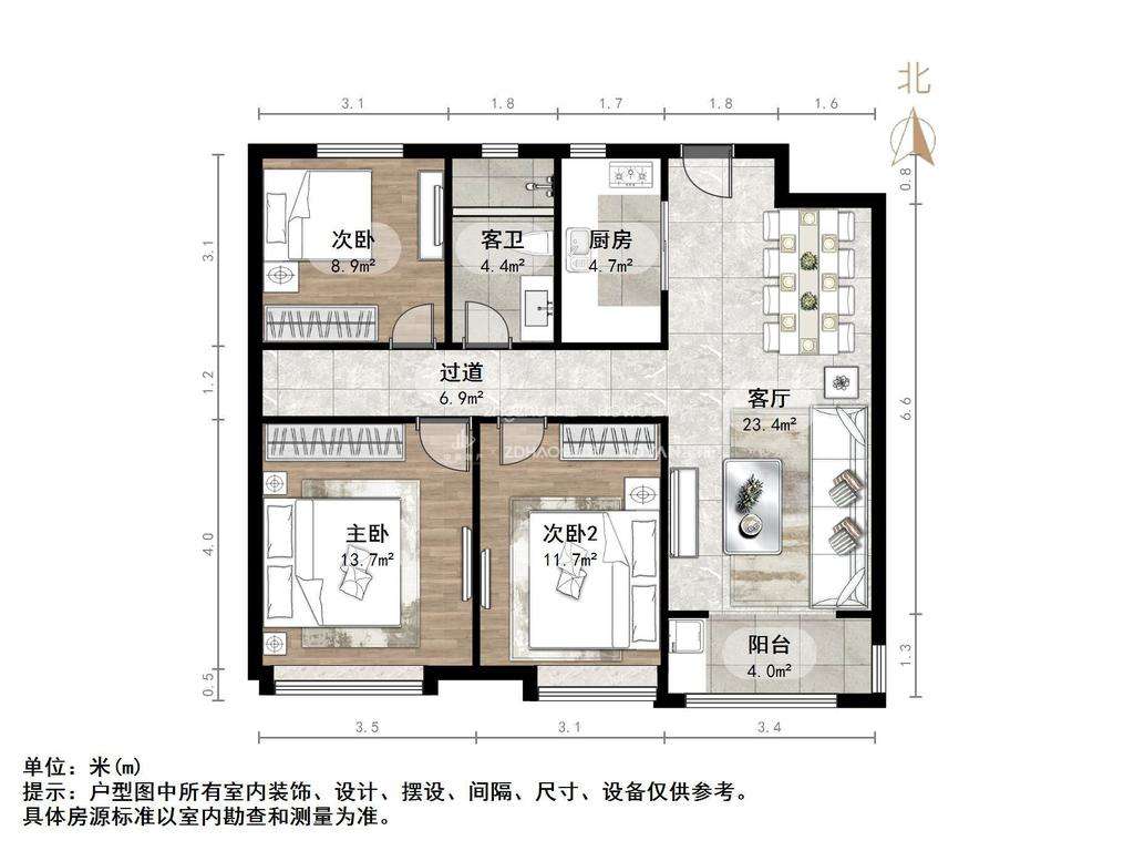 朝向南北 建筑面积105㎡