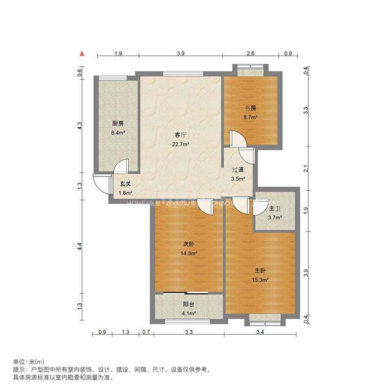 厅室3室2厅2卫1阳台