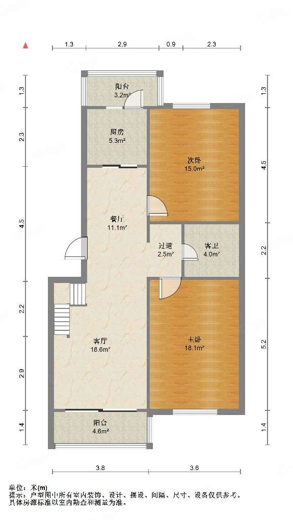 厅室3室2厅2卫3阳台