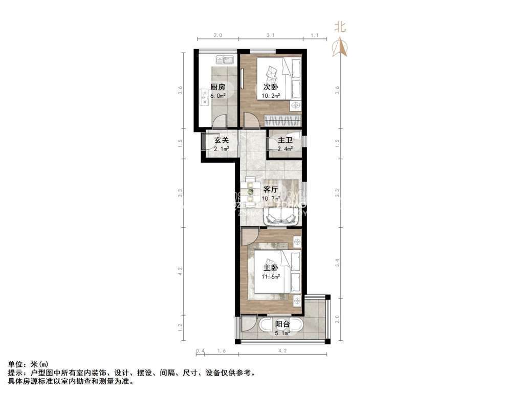 朝向南北 建筑面积60㎡