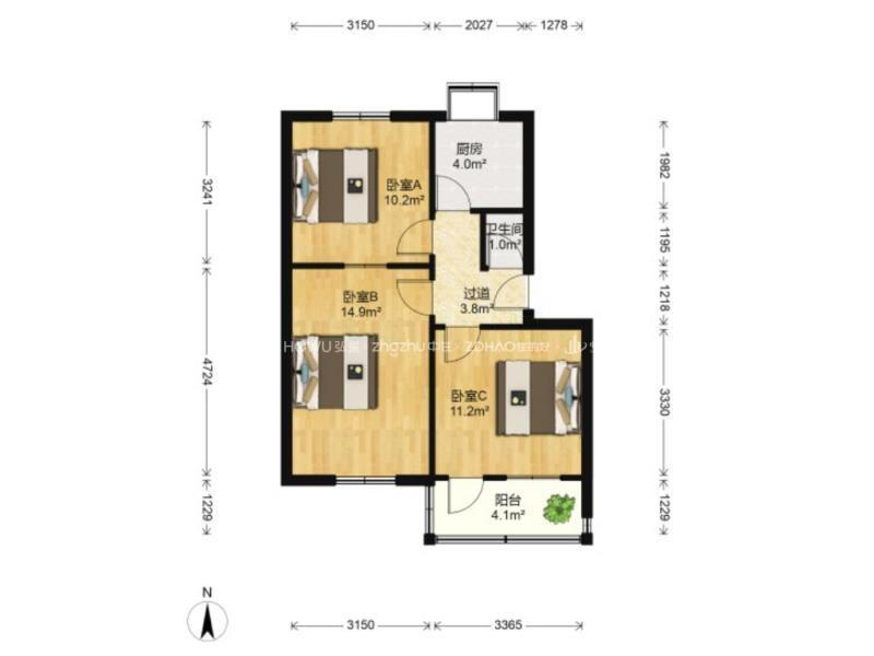 朝向南北 建筑面积62㎡