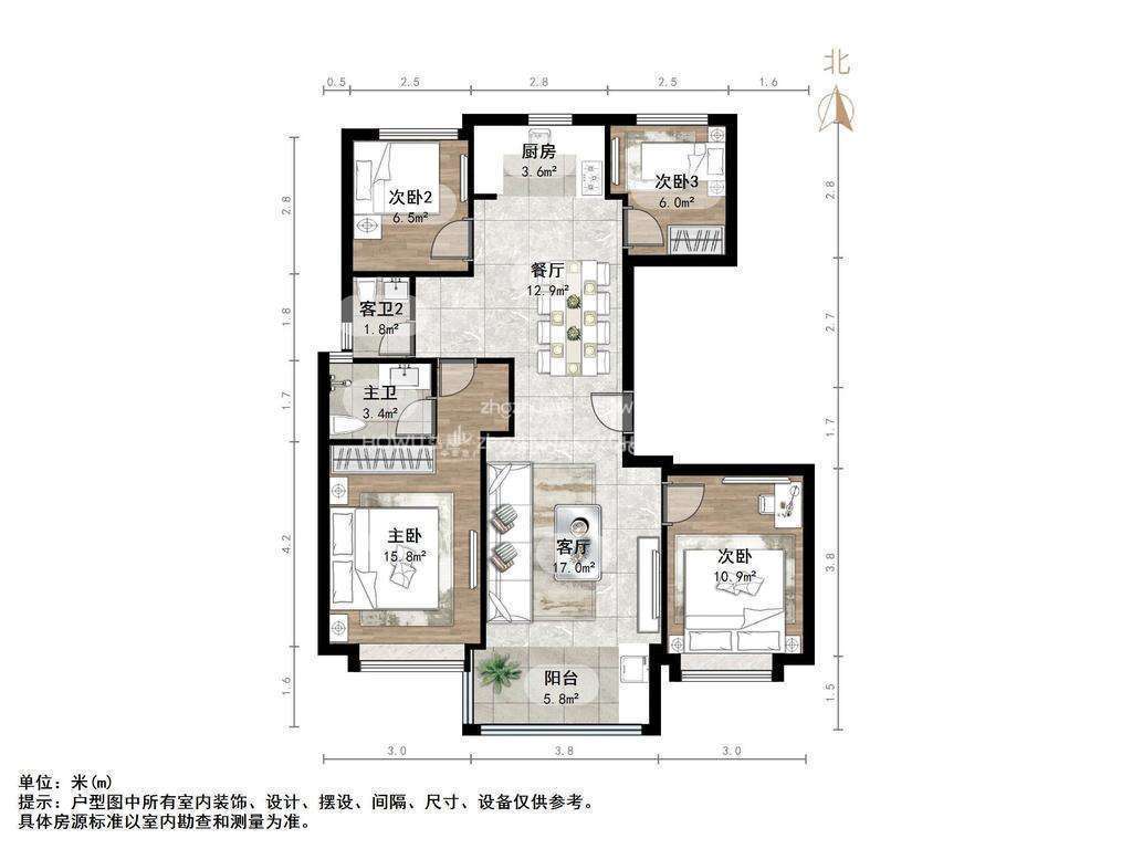 朝向南北 建筑面积127㎡