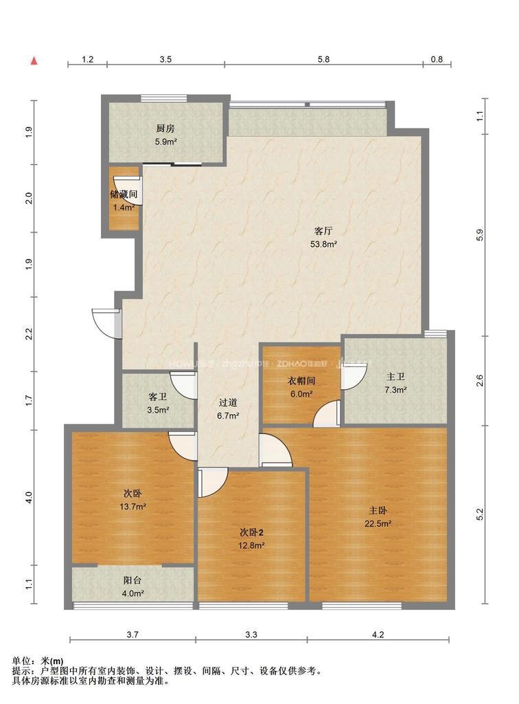 厅室3室2厅2卫1阳台