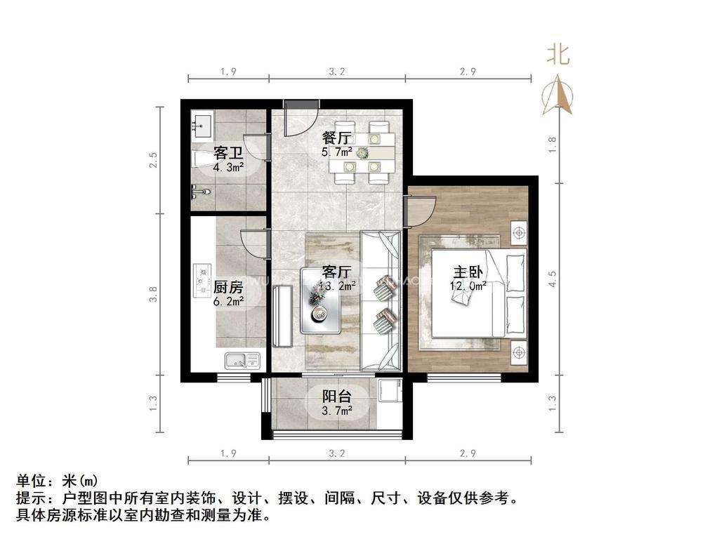厅室1室2厅1卫1阳台