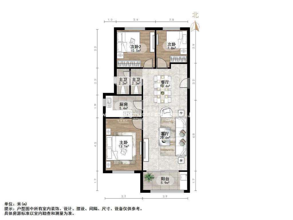 朝向南北 建筑面积122㎡