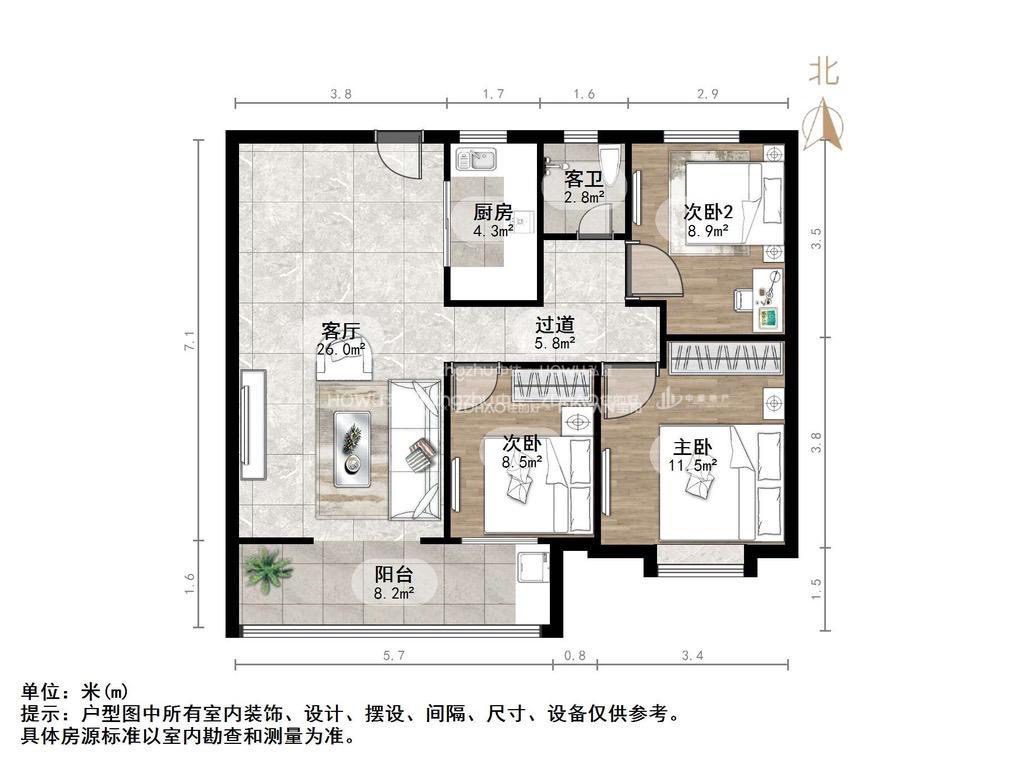 朝向南北 建筑面积103㎡