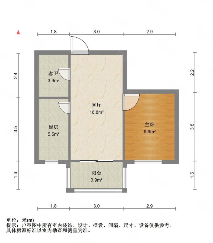 厅室1室1厅1卫1阳台