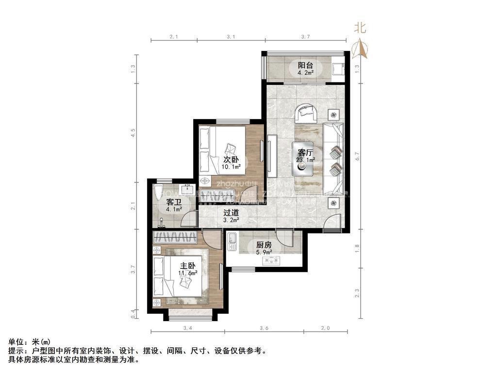 朝向南北 建筑面积96.88㎡