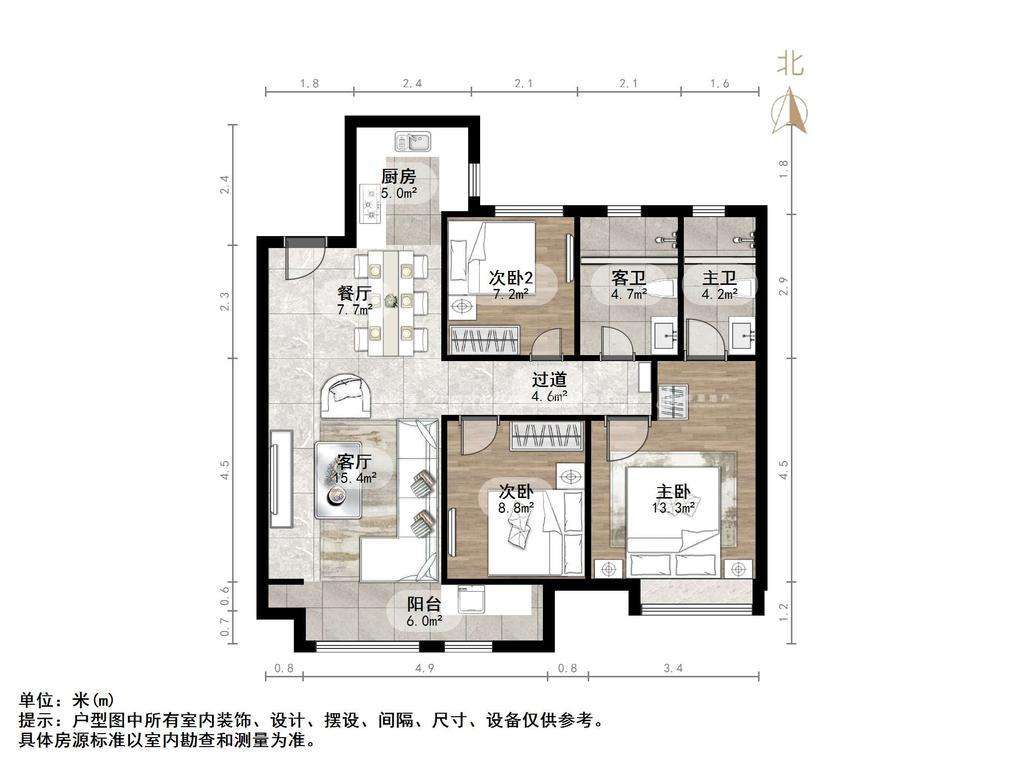 朝向南北 建筑面积105.47㎡