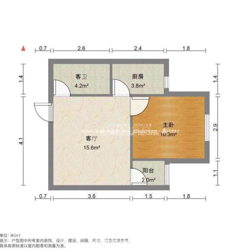 厅室1室1厅1卫1阳台
