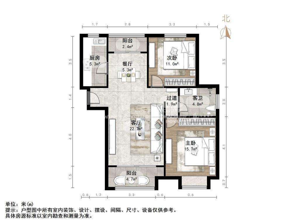 朝向南北 建筑面积98㎡