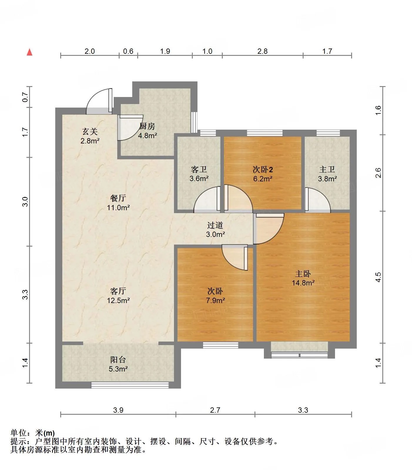 厅室3室2厅2卫1阳台