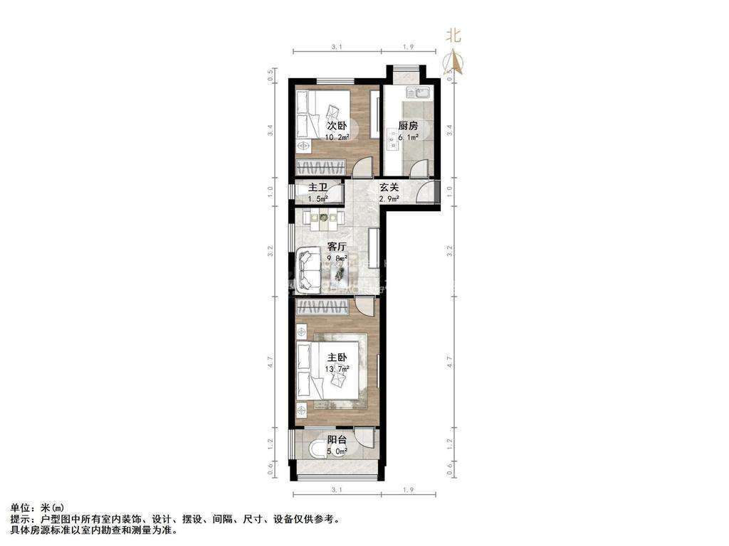 朝向南北 建筑面积63㎡