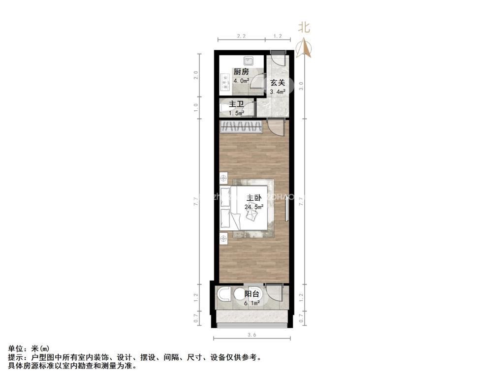 厅室1室1厅1卫1阳台