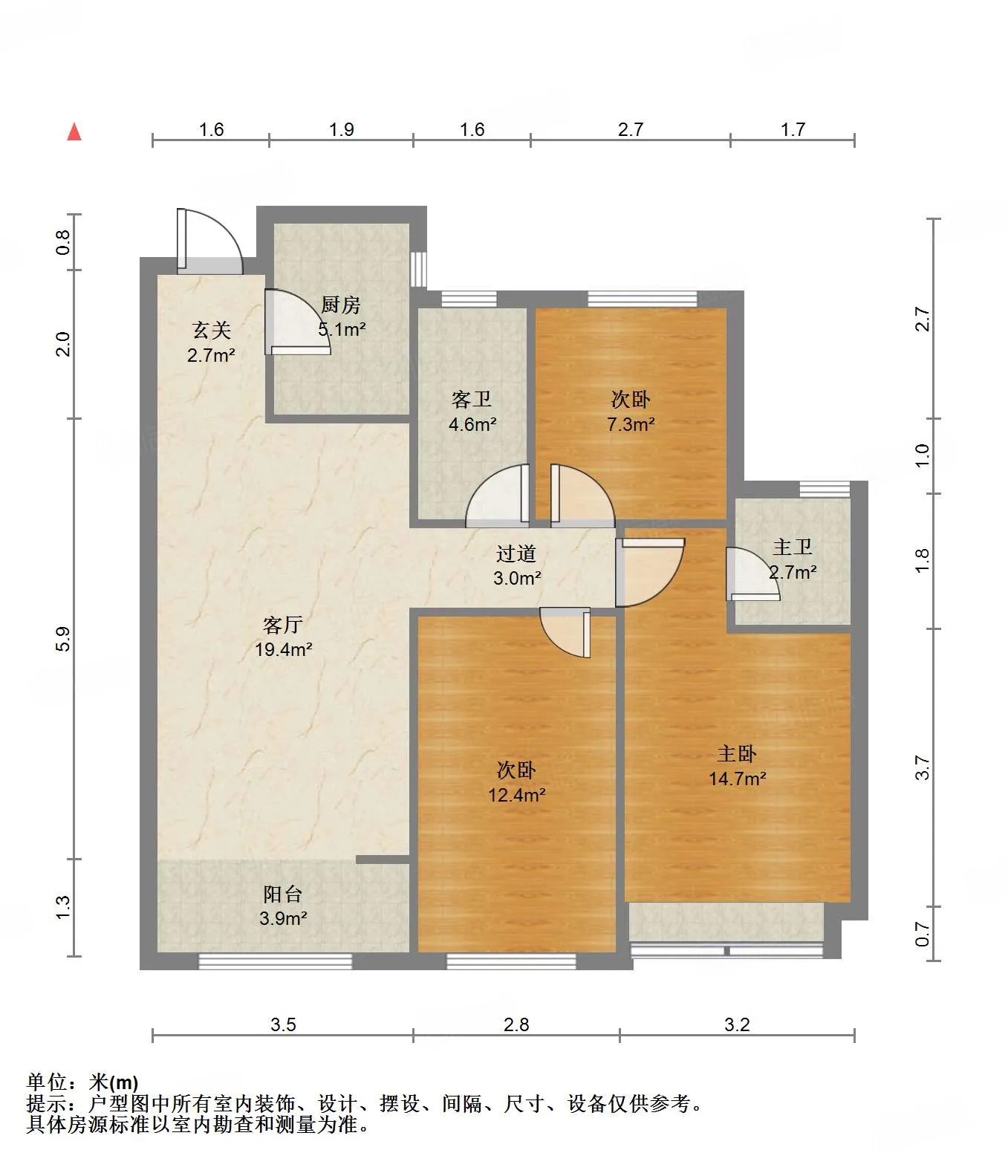 厅室3室2厅2卫1阳台
