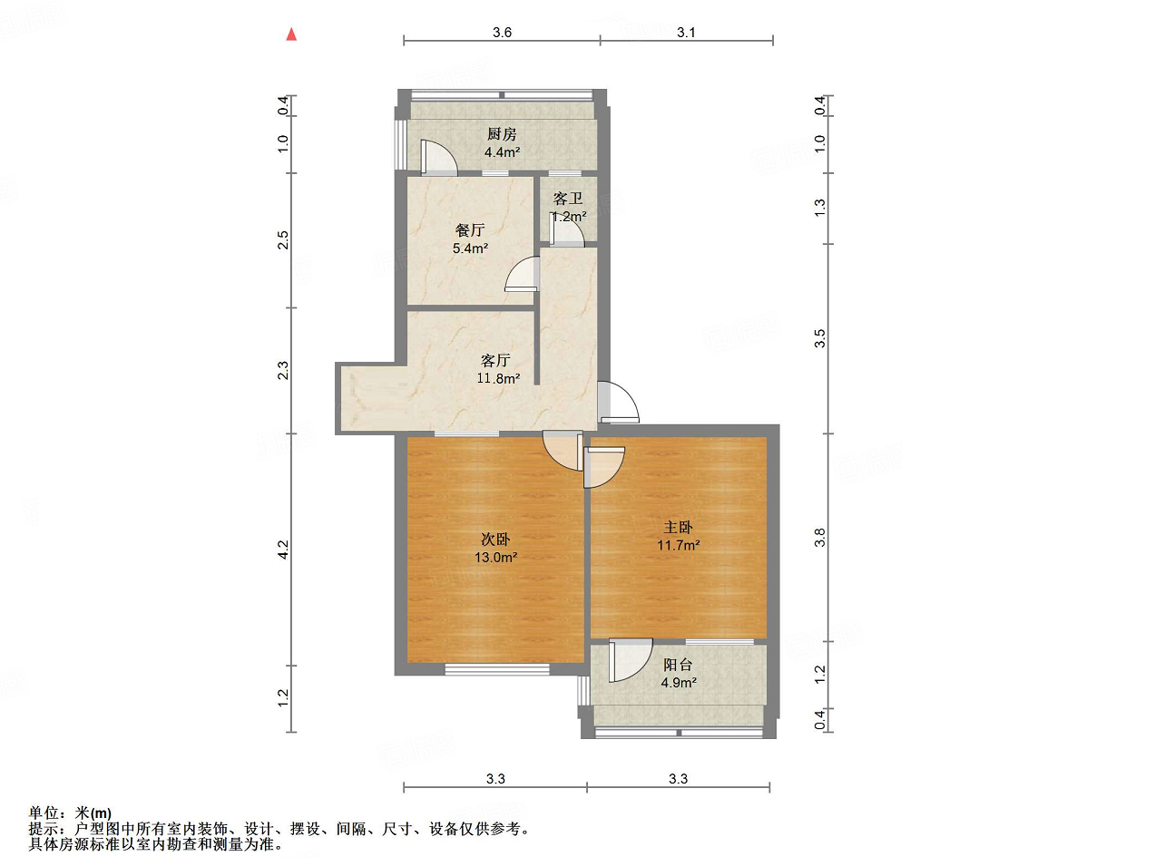 朝向南北 建筑面积65㎡