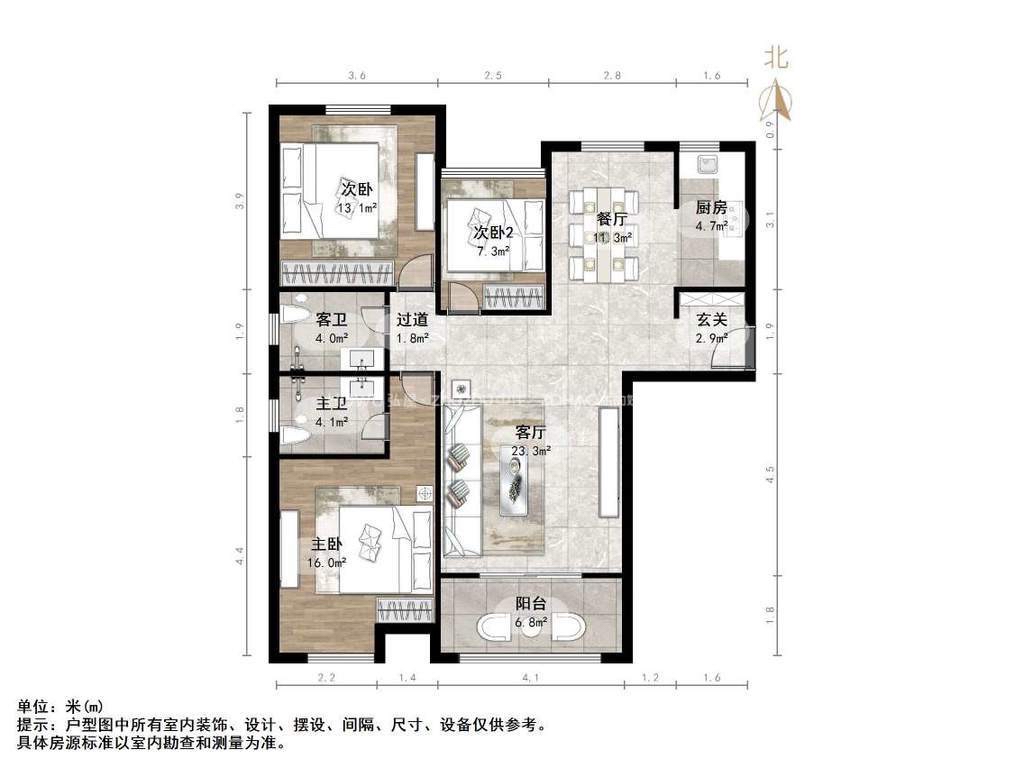 厅室3室2厅2卫1阳台