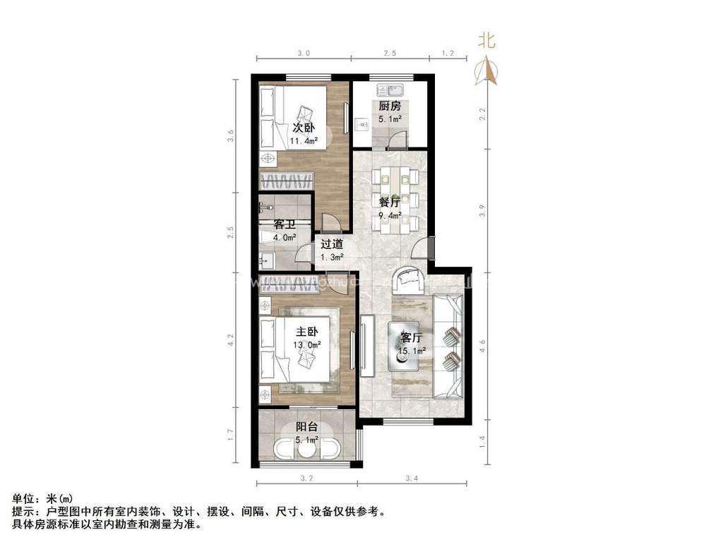 厅室2室2厅1卫1阳台