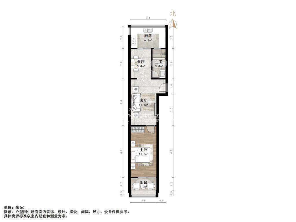 朝向南北 建筑面积48.33㎡