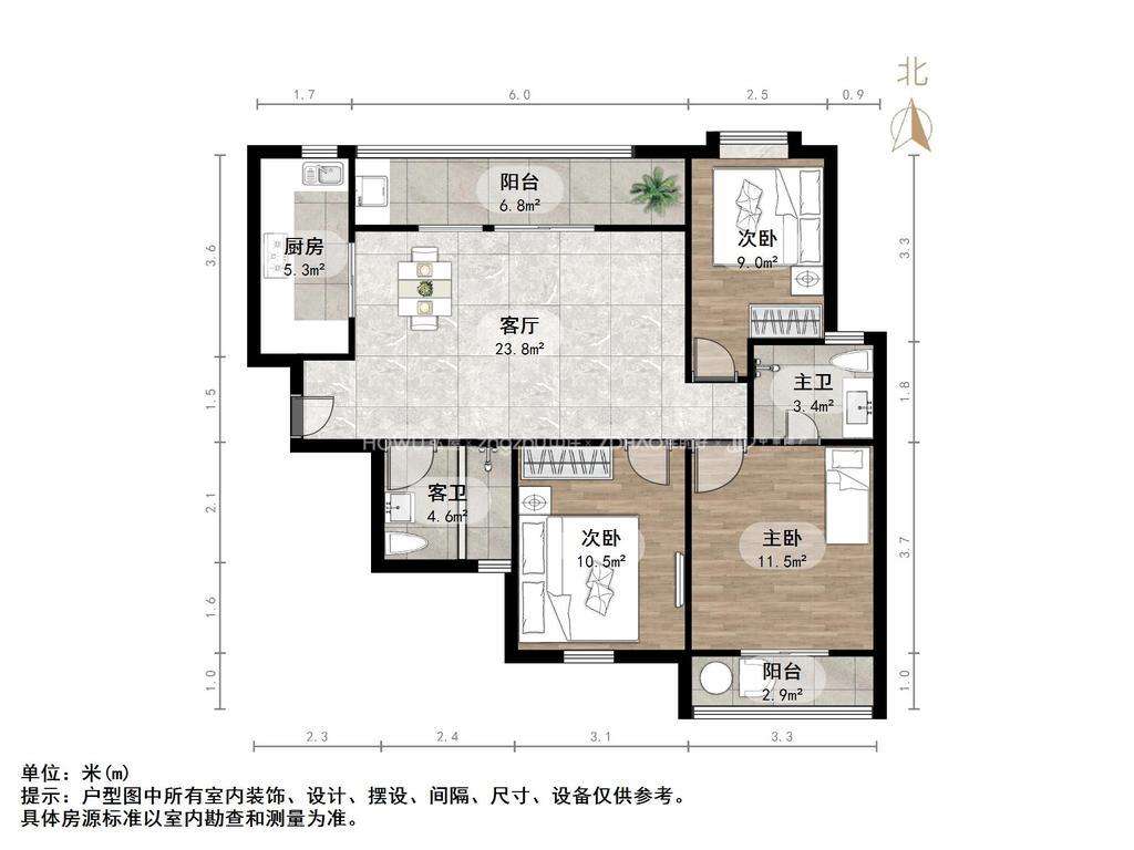 厅室3室2厅2卫2阳台